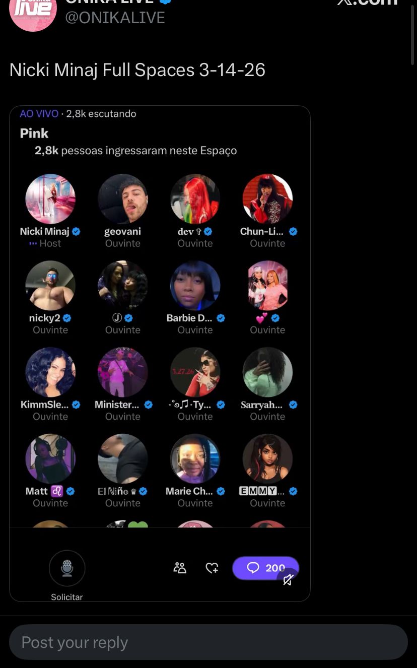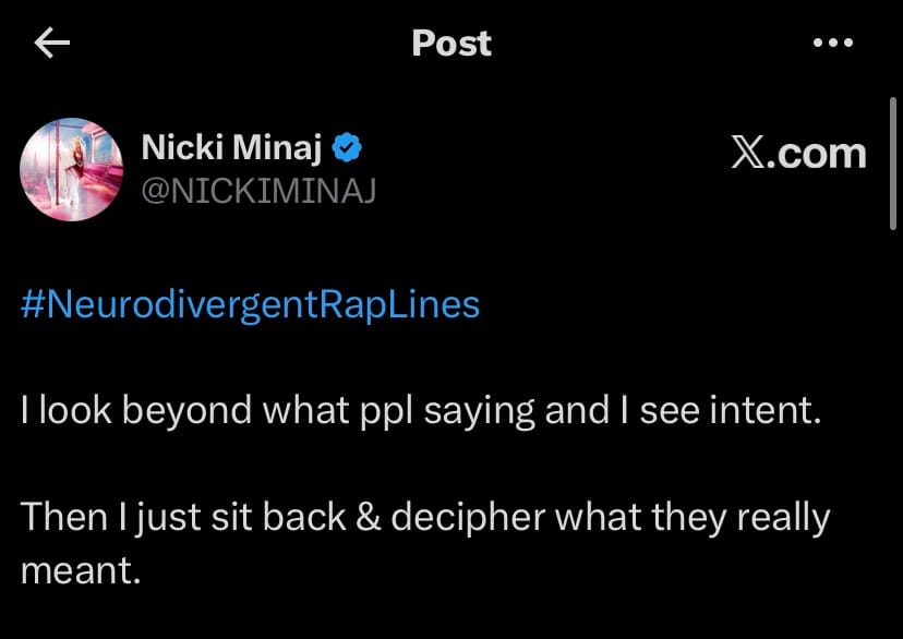 Nicki decided to pop into Spaces last night and of course it happened while I was outside spending time with my family. Now everybody gotta leave me alone because if the Queen pops out again, I need to be fully available. But jokes aside, it felt good hearing from her. Sometimes the Barbz donβt even need anything major β just her presence, her voice, her energy. And when she comes online, the entire timeline turns into a moment. One minute weβre minding our business streaming the catalog, the next minute the timeline is on fire, debates are happening, eras are being revisited, and the Barbz are turning the entire internet into a Nicki Minaj celebration.